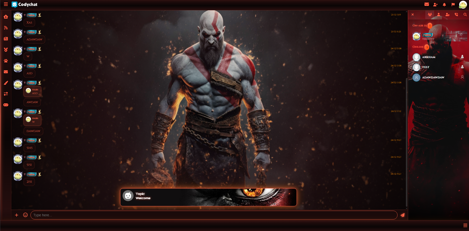 This is a Custom theme for codychat version 9 that is inspired by the game God of War