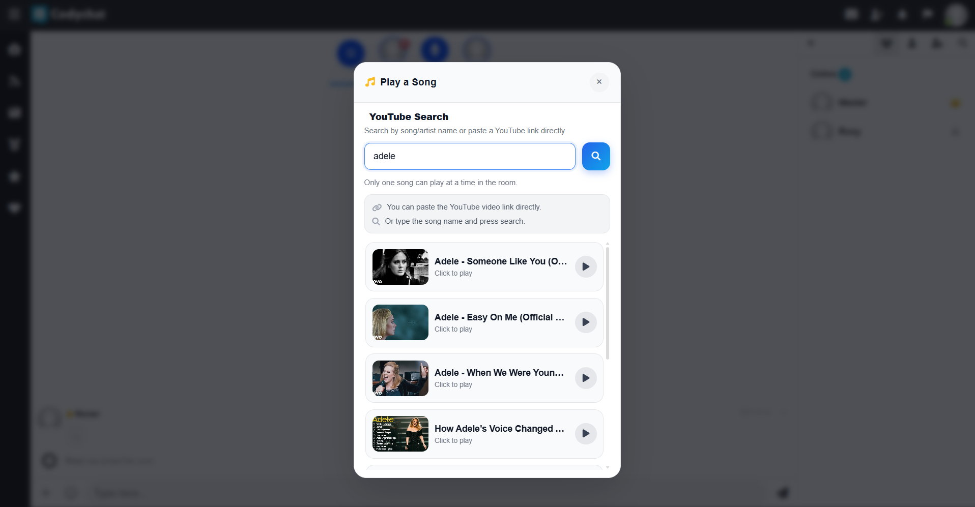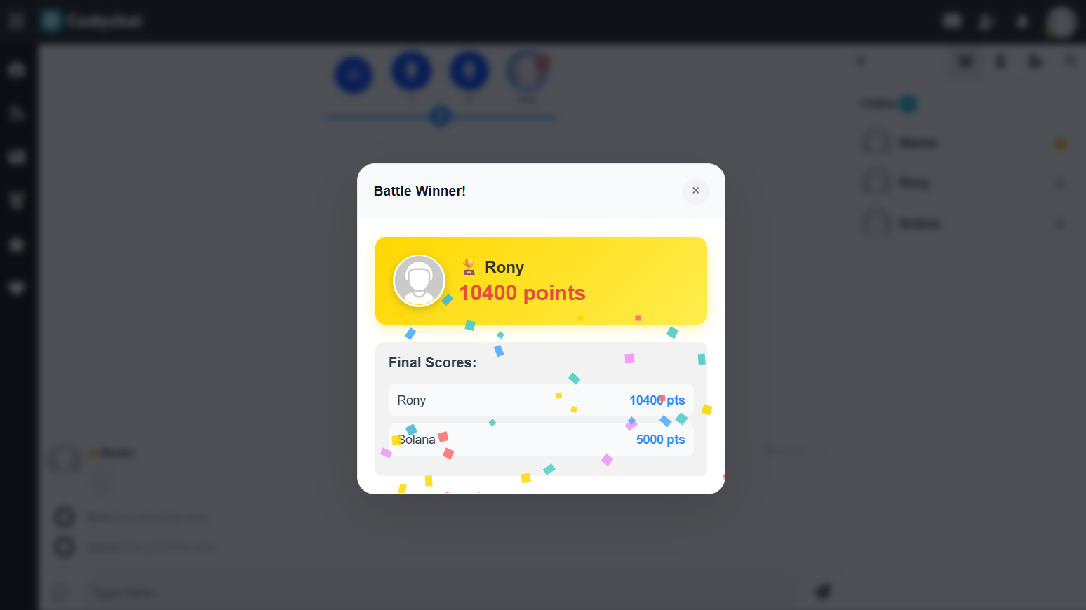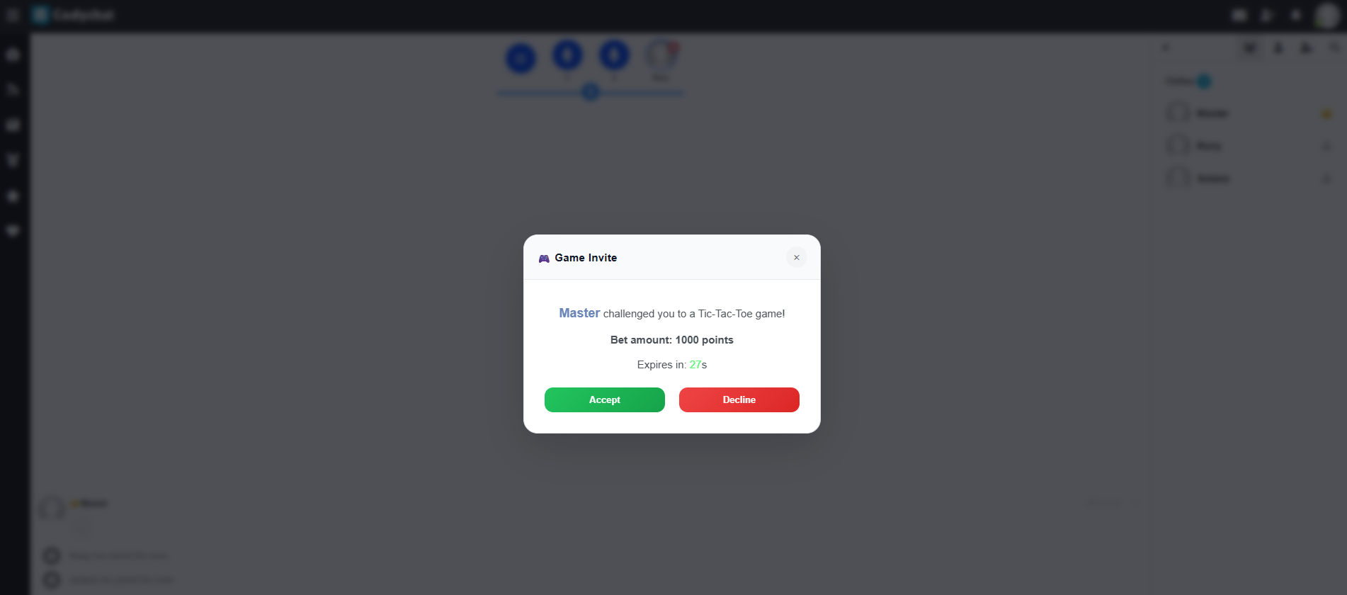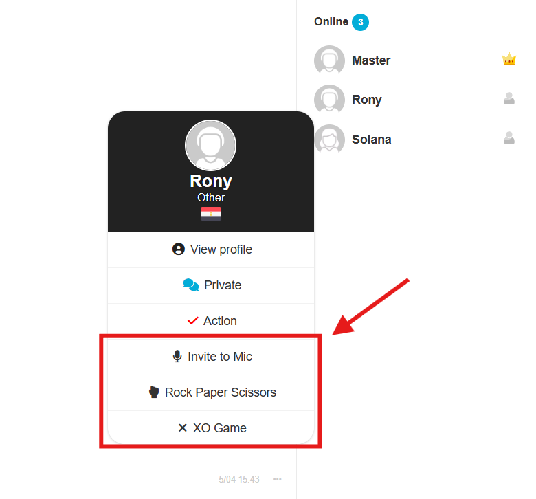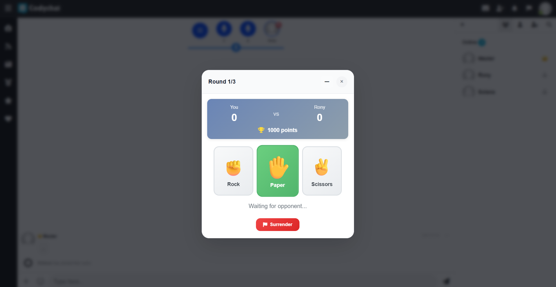 💠Rock Paper Scissors — instant RPS game on the mic All games run entirely over Socket.io — results broadcast to the whole room in real time.