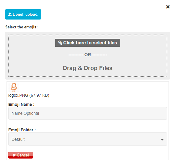 You can now upload / delete your emojis from this addon without any need to login to your server, you can choose the emoji from your device and choose the folder when you want save it on your chat, and you can allow specific rank to use it inside the chat without any need to login to Admin Panel to use this addon.