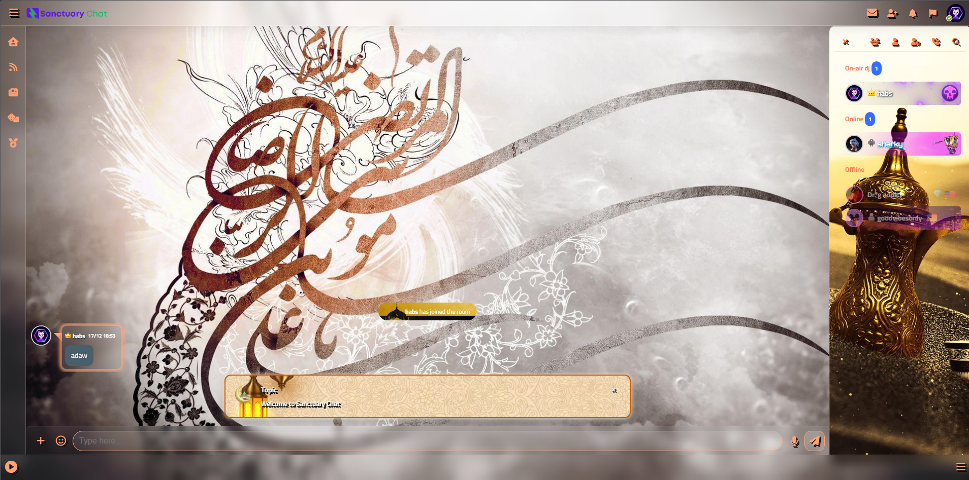 Arab Theme Style (CodyChat Theme) brings an elegant Middle-Eastern vibe to your chat with bold Arabic calligraphy artwork, warm gold/desert tones, and a luxury lantern accent.